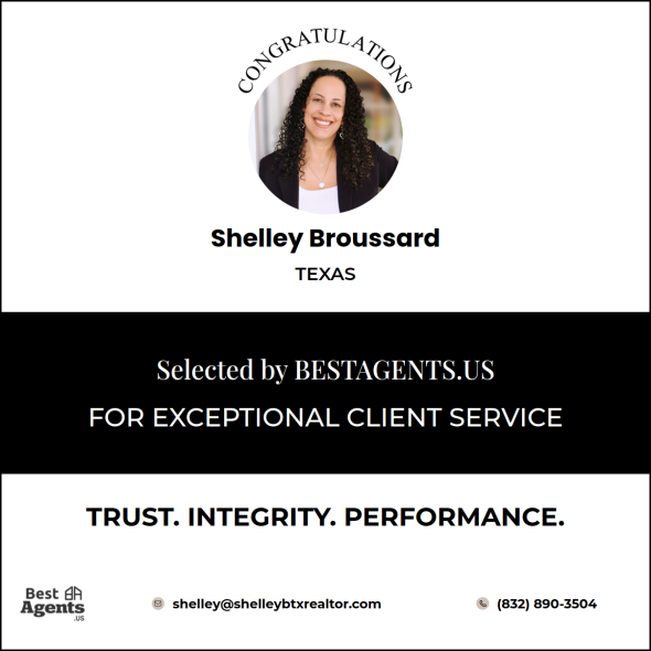 I'm Shelley Broussard, a full-time REALTOR® with Real Broker, LLC, bringing over 20 years of experience in the Greater Houston real estate market. As an Elite Tom Ferry Coaching Member and Top Producer for the past 8 years, I'm committed to staying at the forefront of industry best practices, advanced market knowledge, and exceptional client service.